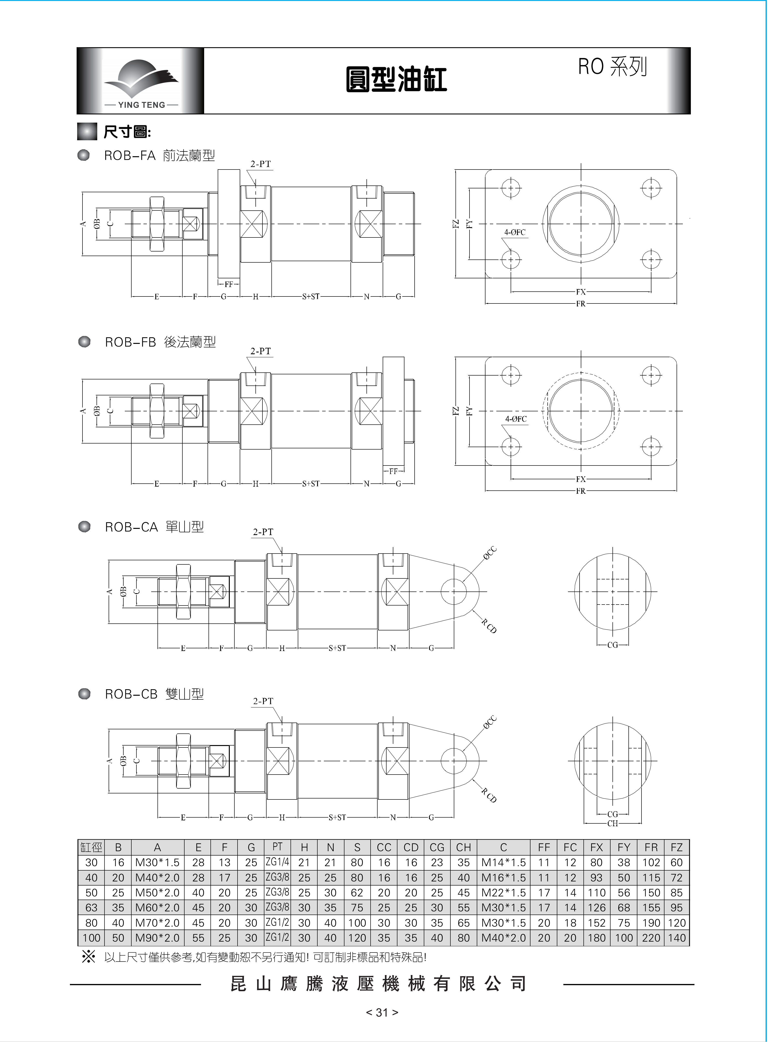 - 圆形油缸 - ROB-FA型
