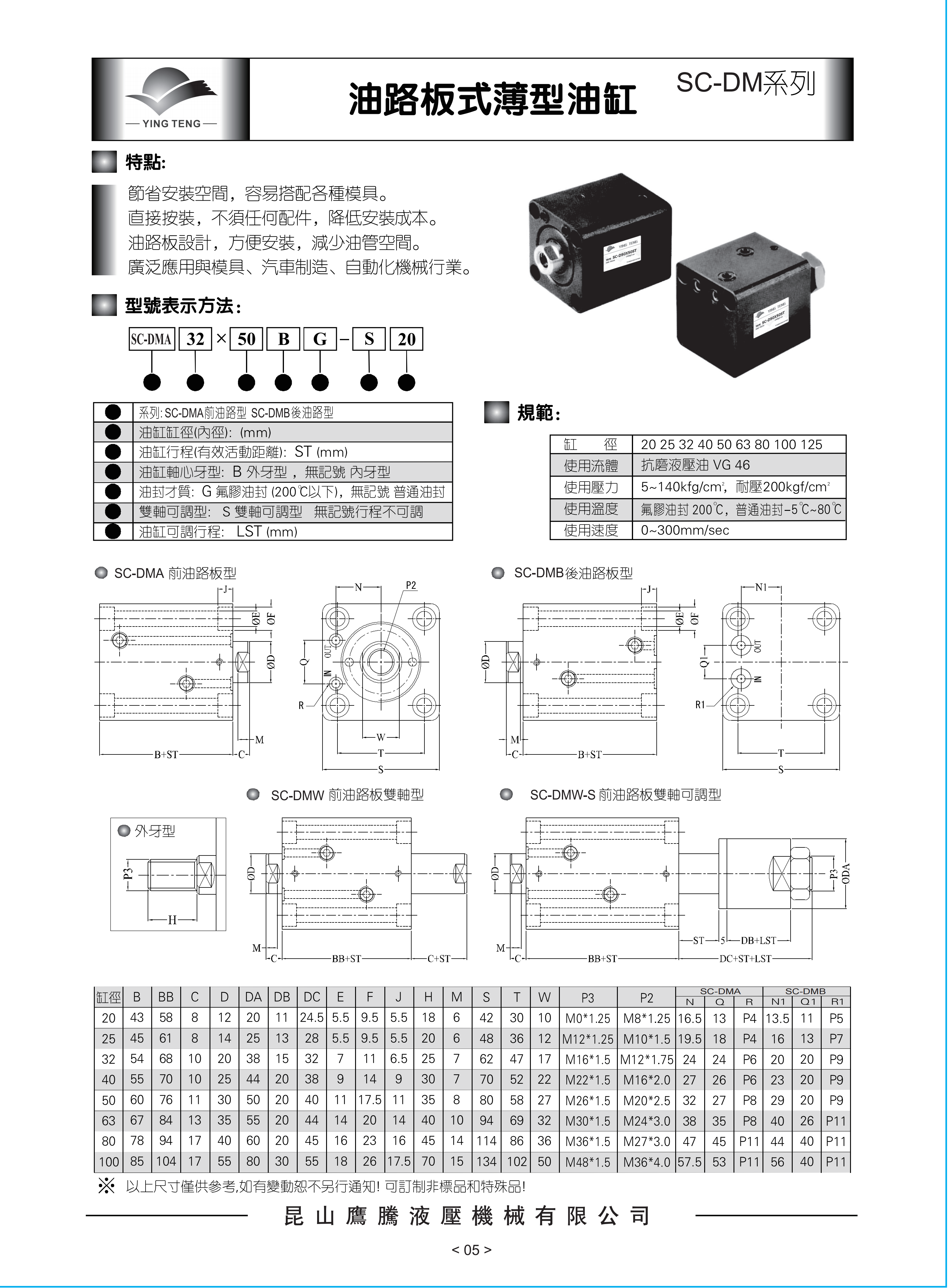 - 薄型油缸 - SC-DMR