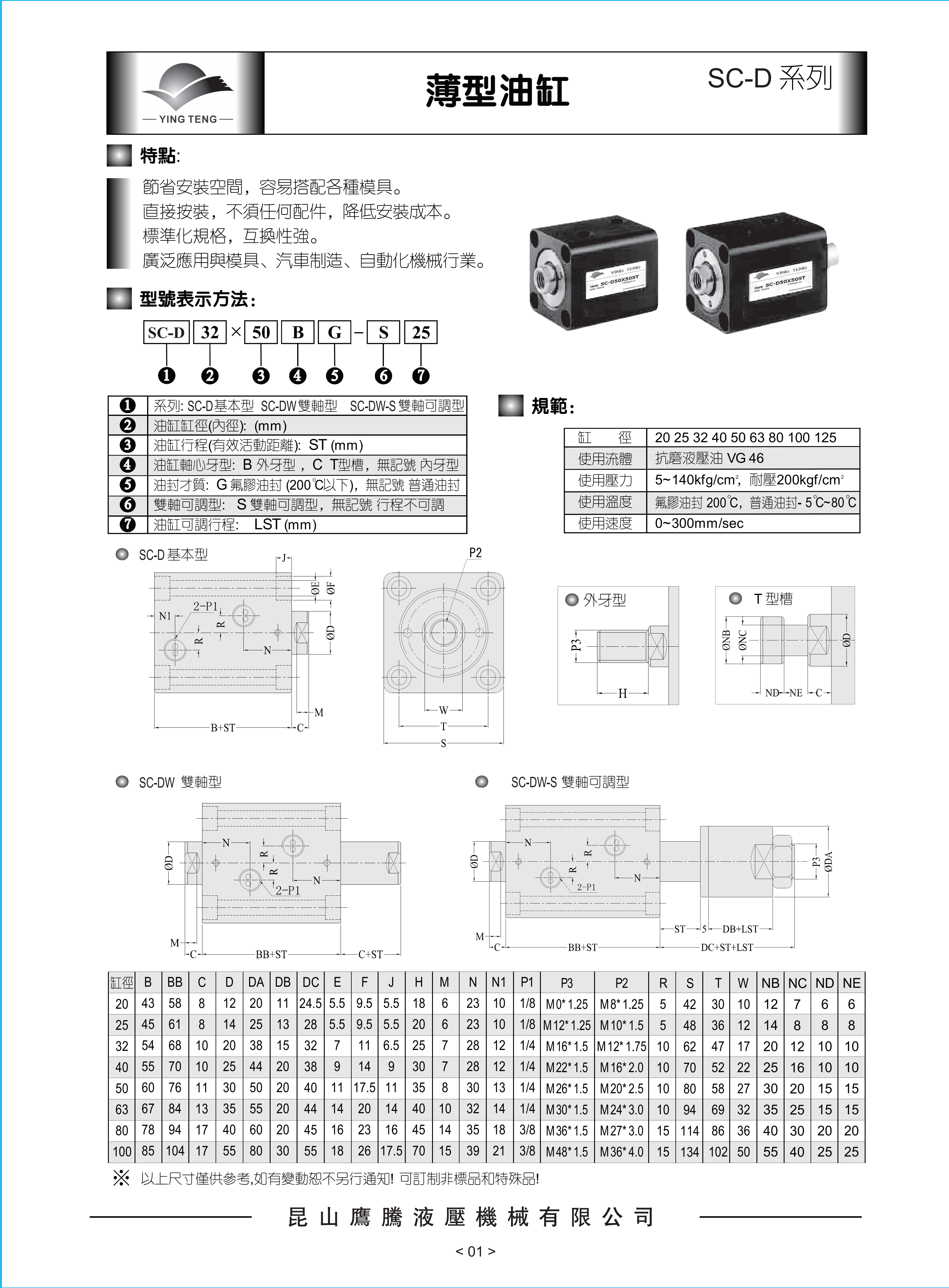 - 模具油缸 - SC-D立式型
